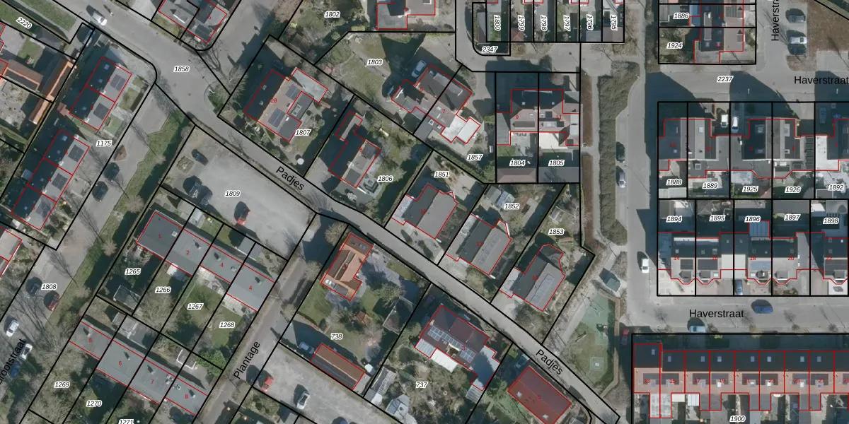 Het perceel waarop Padjes 10 staat heeft een oppervlakte van 339 m². Dit is een groot perceel. De perceeloppervlakte wordt geregistreerd door het Kadaster. Gedetailleerde informatie over de maten van dit perceel kunt u vinden in het rapport Kadastrale kaart met maatvoering van Padjes 10.