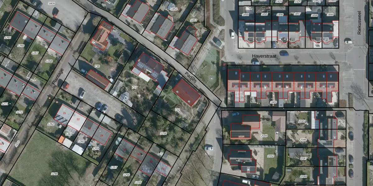 Het perceel waarop Padjes 5 staat heeft een oppervlakte van 585 m². Dit is een groot perceel. De perceeloppervlakte wordt geregistreerd door het Kadaster. Gedetailleerde informatie over de maten van dit perceel kunt u vinden in het rapport Kadastrale kaart met maatvoering van Padjes 5.