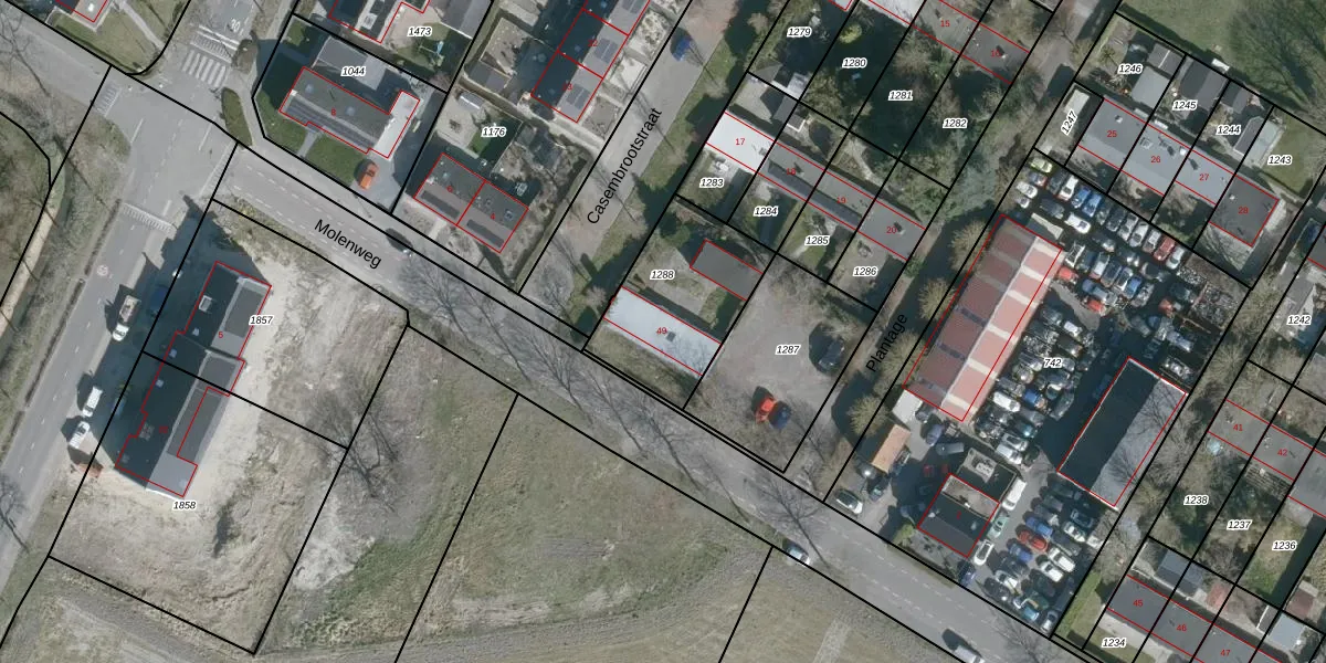 Het perceel waarop Plantage 49 staat heeft een oppervlakte van 486 m². Dit is een groot perceel. De perceeloppervlakte wordt geregistreerd door het Kadaster. Gedetailleerde informatie over de maten van dit perceel kunt u vinden in het rapport Kadastrale kaart met maatvoering van Plantage 49.