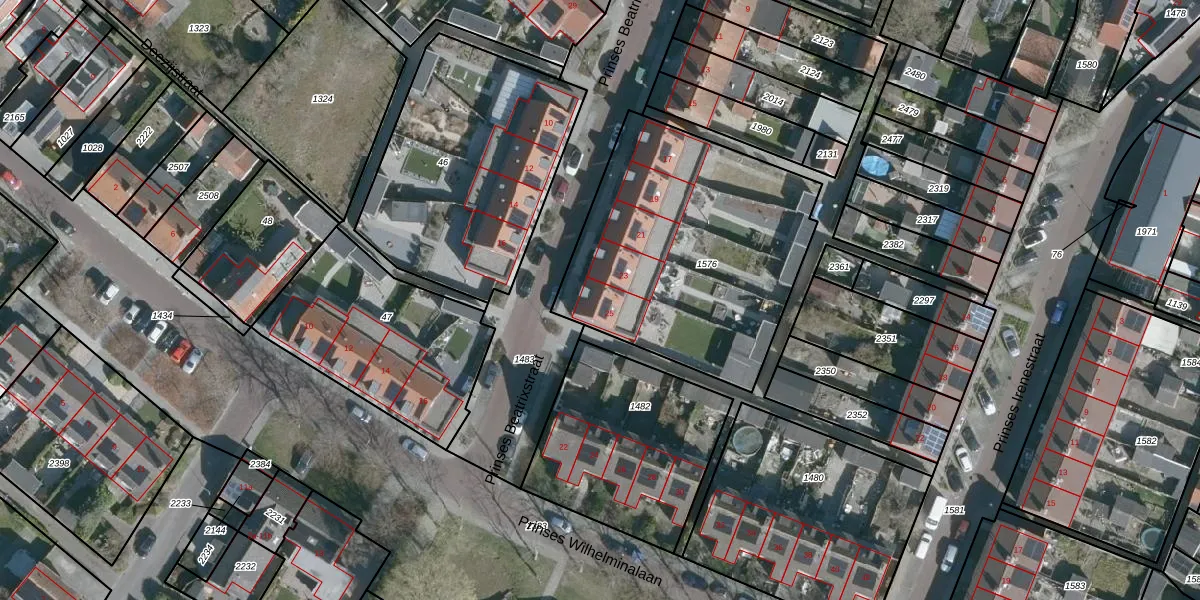 Het perceel waarop Prinses Beatrixstraat 25 staat heeft een oppervlakte van 1300 m². Dit is een zeer groot perceel. De perceeloppervlakte wordt geregistreerd door het Kadaster. Gedetailleerde informatie over de maten van dit perceel kunt u vinden in het rapport Kadastrale kaart met maatvoering van Prinses Beatrixstraat 25.