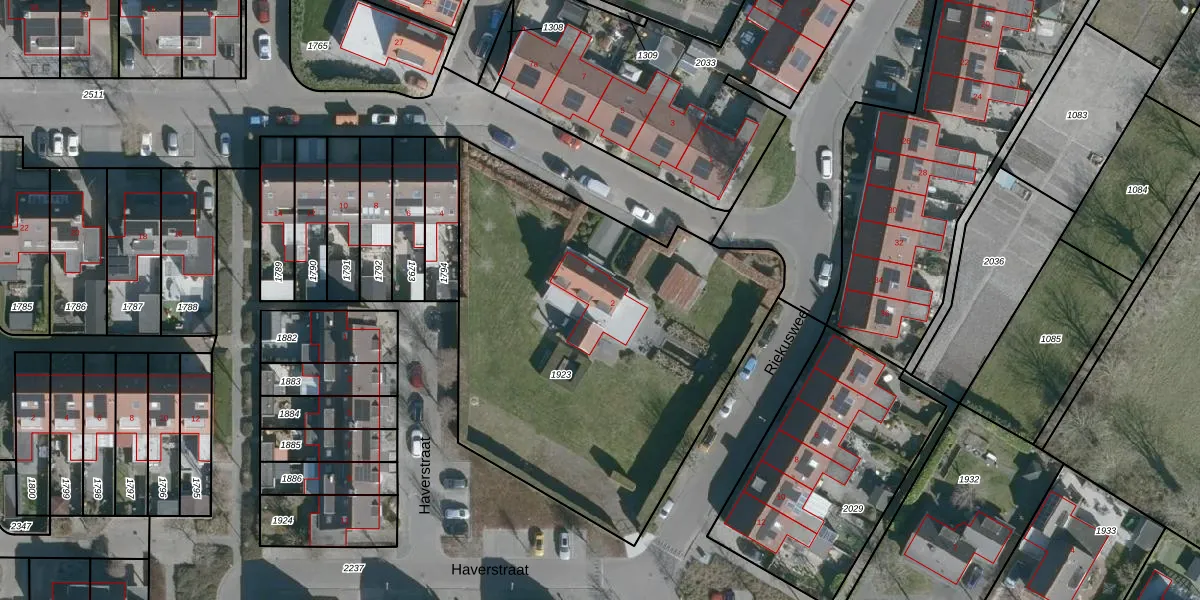 Het perceel waarop Tarwestraat 2 staat heeft een oppervlakte van 2241 m². Dit is een zeer groot perceel. De perceeloppervlakte wordt geregistreerd door het Kadaster. Gedetailleerde informatie over de maten van dit perceel kunt u vinden in het rapport Kadastrale kaart met maatvoering van Tarwestraat 2.