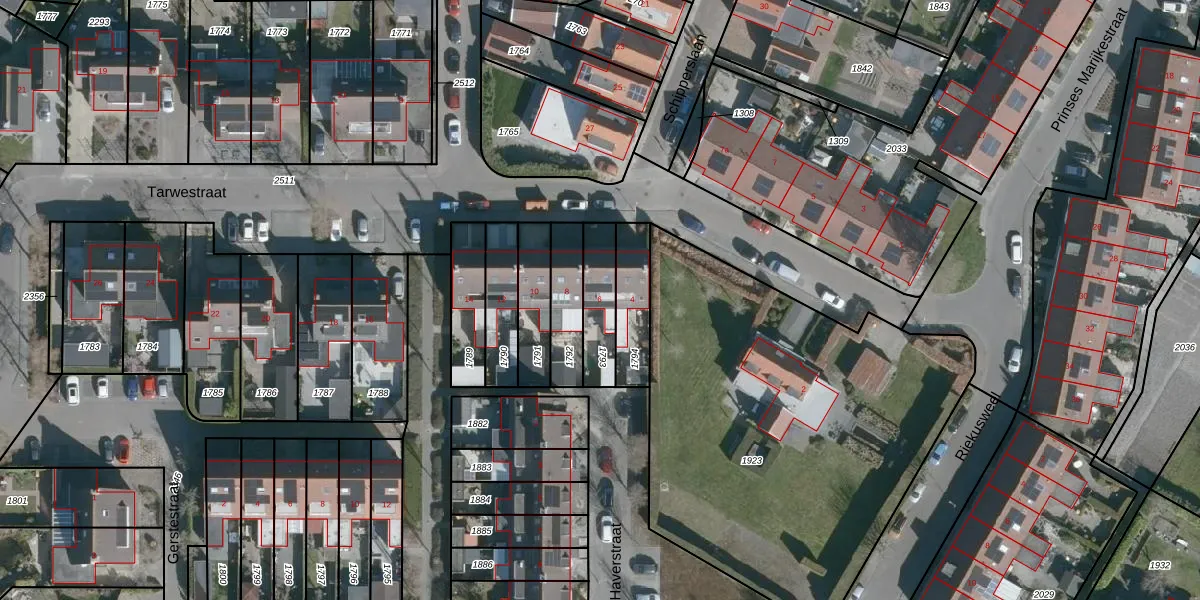 Het perceel waarop Tarwestraat 6 staat heeft een oppervlakte van 148 m². Dit is een middelgroot perceel. De perceeloppervlakte wordt geregistreerd door het Kadaster. Gedetailleerde informatie over de maten van dit perceel kunt u vinden in het rapport Kadastrale kaart met maatvoering van Tarwestraat 6.