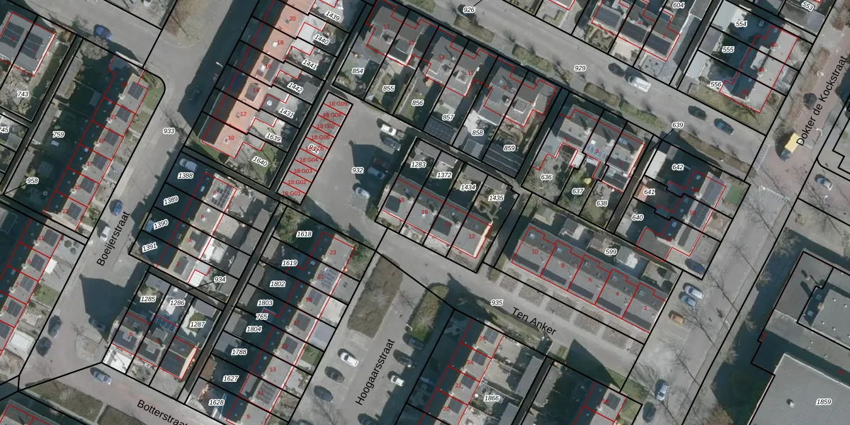 Gebruik de zoekbalk of klik op een perceel voor informatie over de adressen binnen dit perceel.