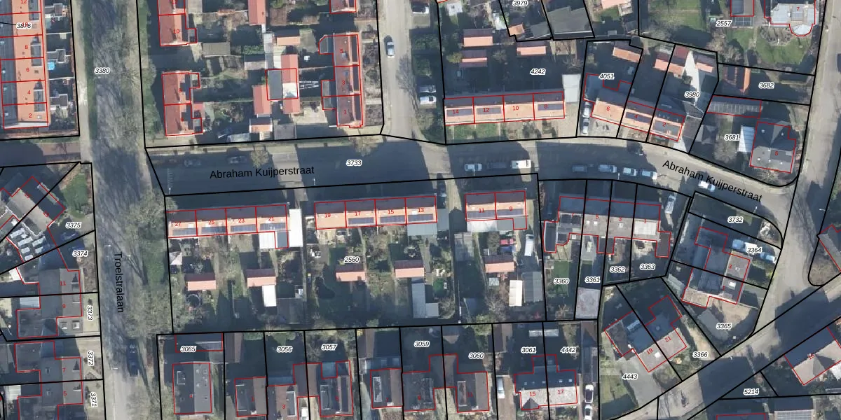 Het perceel waarop Abraham Kuijperstraat 13 staat heeft een oppervlakte van 3050 m². Dit is een zeer groot perceel. De perceeloppervlakte wordt geregistreerd door het Kadaster. Gedetailleerde informatie over de maten van dit perceel kunt u vinden in het rapport Kadastrale kaart met maatvoering van Abraham Kuijperstraat 13.
