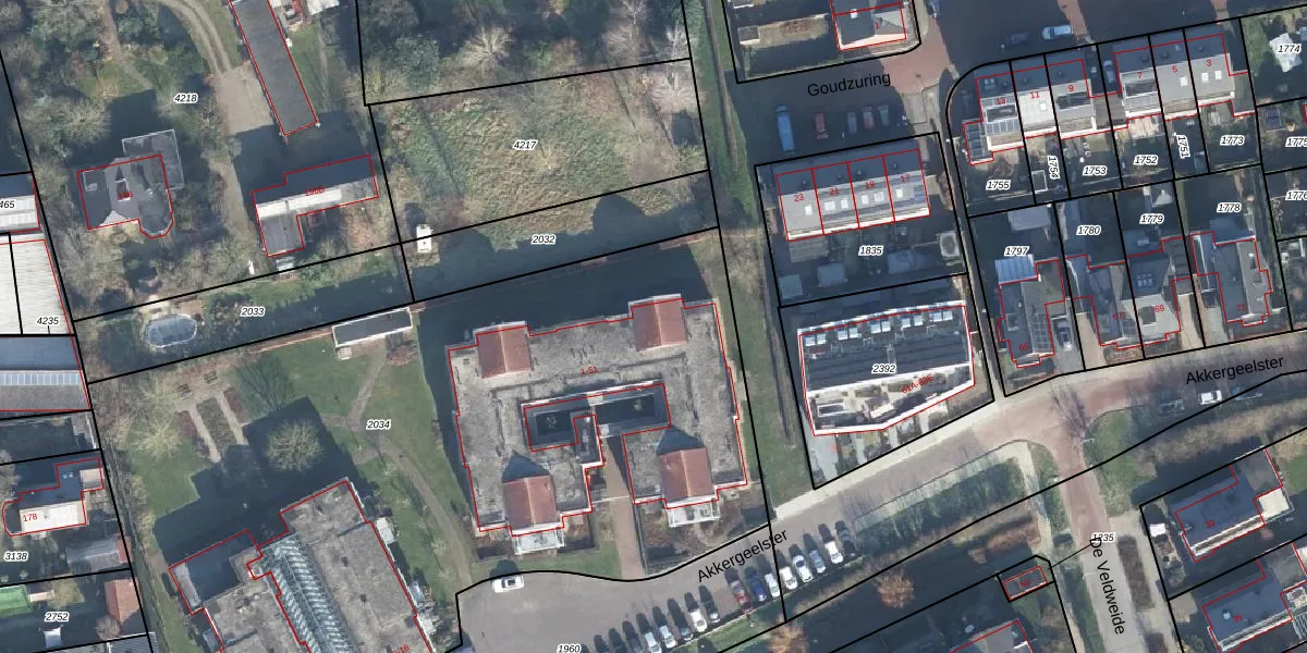 Het perceel waarop Akkergeelster 17 staat heeft een oppervlakte van 5890 m². Dit is een zeer groot perceel. De perceeloppervlakte wordt geregistreerd door het Kadaster. Gedetailleerde informatie over de maten van dit perceel kunt u vinden in het rapport Kadastrale kaart met maatvoering van Akkergeelster 17.