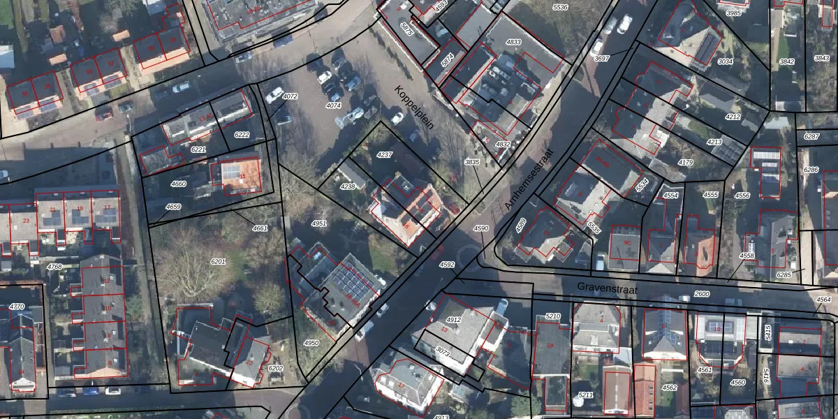 Gebruik de zoekbalk of klik op een perceel voor informatie over de adressen binnen dit perceel.