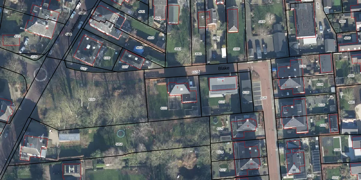 Het perceel waarop Blake 2 staat heeft een oppervlakte van 706 m². Dit is een groot perceel. De perceeloppervlakte wordt geregistreerd door het Kadaster. Gedetailleerde informatie over de maten van dit perceel kunt u vinden in het rapport Kadastrale kaart met maatvoering van Blake 2.
