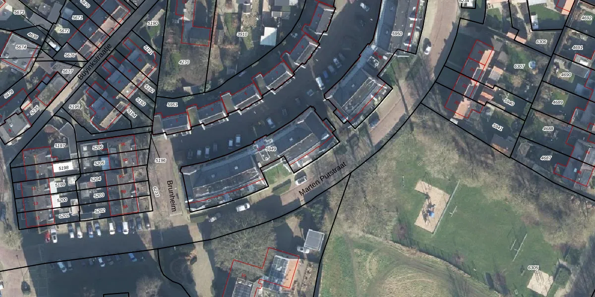 Het perceel waarop Brunheim 16 staat heeft een oppervlakte van 761 m². Dit is een groot perceel. De perceeloppervlakte wordt geregistreerd door het Kadaster. Gedetailleerde informatie over de maten van dit perceel kunt u vinden in het rapport Kadastrale kaart met maatvoering van Brunheim 16.