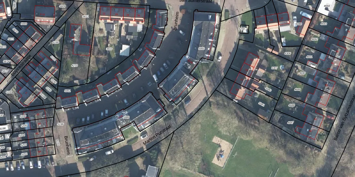 Het perceel waarop Brunheim 24 staat heeft een oppervlakte van 782 m². Dit is een groot perceel. De perceeloppervlakte wordt geregistreerd door het Kadaster. Gedetailleerde informatie over de maten van dit perceel kunt u vinden in het rapport Kadastrale kaart met maatvoering van Brunheim 24.