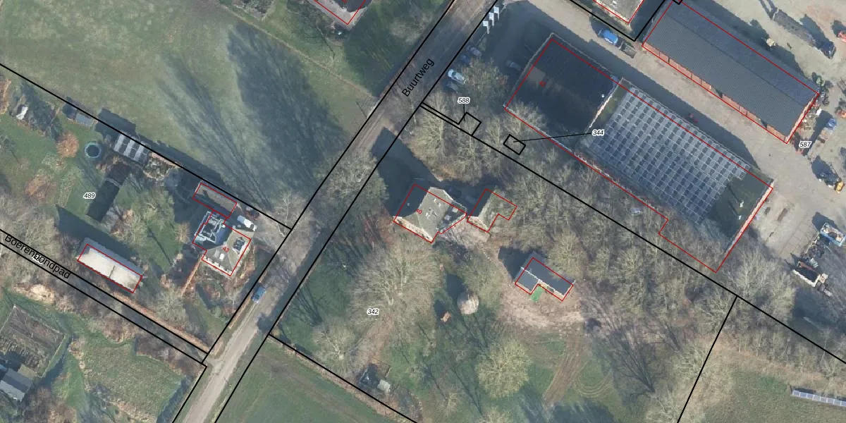 Het perceel waarop Buurtweg 40 staat heeft een oppervlakte van 6005 m². Dit is een zeer groot perceel. De perceeloppervlakte wordt geregistreerd door het Kadaster. Gedetailleerde informatie over de maten van dit perceel kunt u vinden in het rapport Kadastrale kaart met maatvoering van Buurtweg 40.
