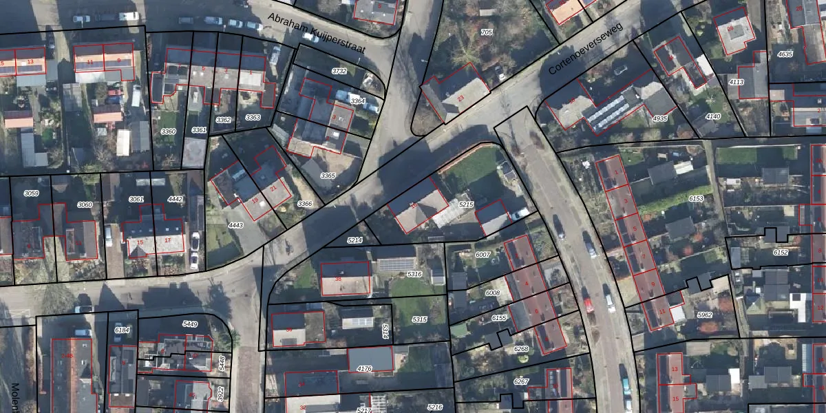 Het perceel waarop Cortenoeverseweg 16 staat heeft een oppervlakte van 615 m². Dit is een groot perceel. De perceeloppervlakte wordt geregistreerd door het Kadaster. Gedetailleerde informatie over de maten van dit perceel kunt u vinden in het rapport Kadastrale kaart met maatvoering van Cortenoeverseweg 16.