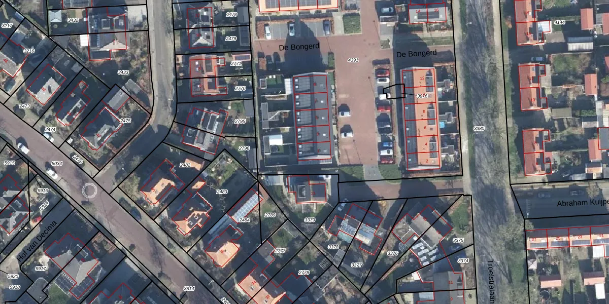 Het perceel waarop De Bongerd 1 staat heeft een oppervlakte van 5124 m². Dit is een zeer groot perceel. De perceeloppervlakte wordt geregistreerd door het Kadaster. Gedetailleerde informatie over de maten van dit perceel kunt u vinden in het rapport Kadastrale kaart met maatvoering van De Bongerd 1.