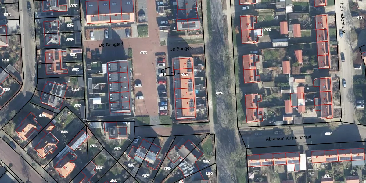 Het perceel waarop De Bongerd 6 staat heeft een oppervlakte van 5124 m². Dit is een zeer groot perceel. De perceeloppervlakte wordt geregistreerd door het Kadaster. Gedetailleerde informatie over de maten van dit perceel kunt u vinden in het rapport Kadastrale kaart met maatvoering van De Bongerd 6.