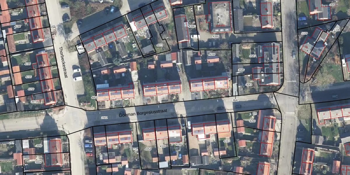 Het perceel waarop Goeman Borgesiusstraat 8 staat heeft een oppervlakte van 4705 m². Dit is een zeer groot perceel. De perceeloppervlakte wordt geregistreerd door het Kadaster. Gedetailleerde informatie over de maten van dit perceel kunt u vinden in het rapport Kadastrale kaart met maatvoering van Goeman Borgesiusstraat 8.