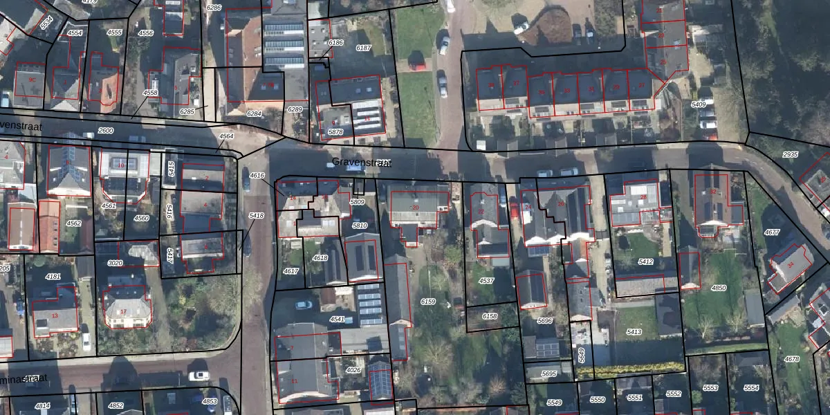 Gebruik de zoekbalk of klik op een perceel voor informatie over de adressen binnen dit perceel.