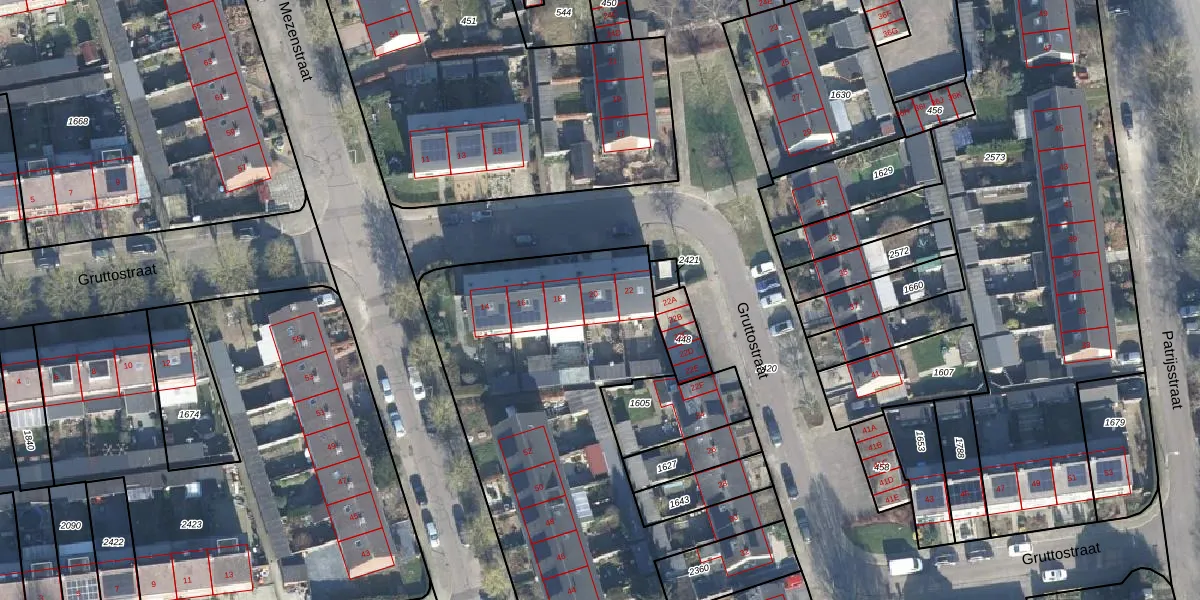 Het perceel waarop Gruttostraat 20 staat heeft een oppervlakte van 5677 m². Dit is een zeer groot perceel. De perceeloppervlakte wordt geregistreerd door het Kadaster. Gedetailleerde informatie over de maten van dit perceel kunt u vinden in het rapport Kadastrale kaart met maatvoering van Gruttostraat 20.