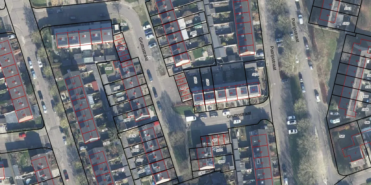 Het perceel waarop Gruttostraat 41-D staat heeft een oppervlakte van 92 m². Dit is een klein perceel. De perceeloppervlakte wordt geregistreerd door het Kadaster. Gedetailleerde informatie over de maten van dit perceel kunt u vinden in het rapport Kadastrale kaart met maatvoering van Gruttostraat 41-D.