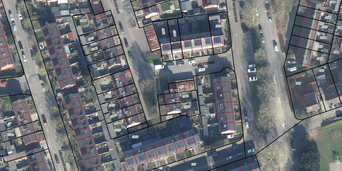 Het perceel waarop Gruttostraat 48 staat heeft een oppervlakte van 91 m². Dit is een klein perceel. De perceeloppervlakte wordt geregistreerd door het Kadaster. Gedetailleerde informatie over de maten van dit perceel kunt u vinden in het rapport Kadastrale kaart met maatvoering van Gruttostraat 48.