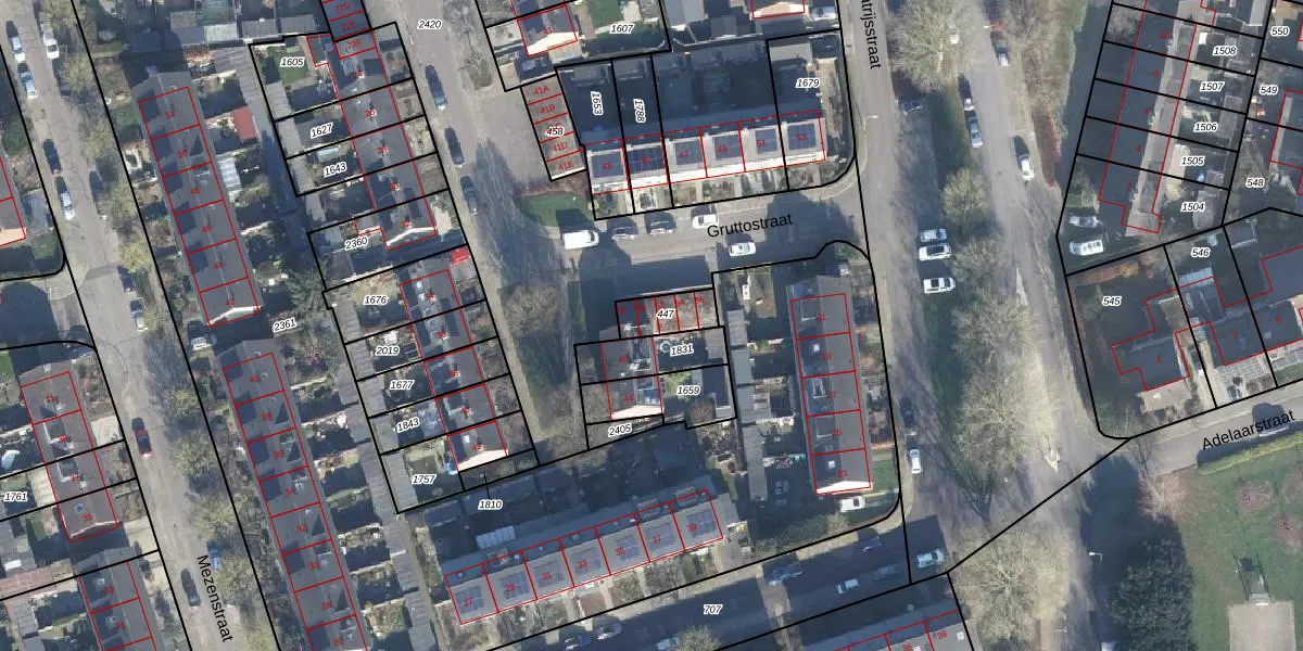 Het perceel waarop Gruttostraat 50 staat heeft een oppervlakte van 91 m². Dit is een klein perceel. De perceeloppervlakte wordt geregistreerd door het Kadaster. Gedetailleerde informatie over de maten van dit perceel kunt u vinden in het rapport Kadastrale kaart met maatvoering van Gruttostraat 50.