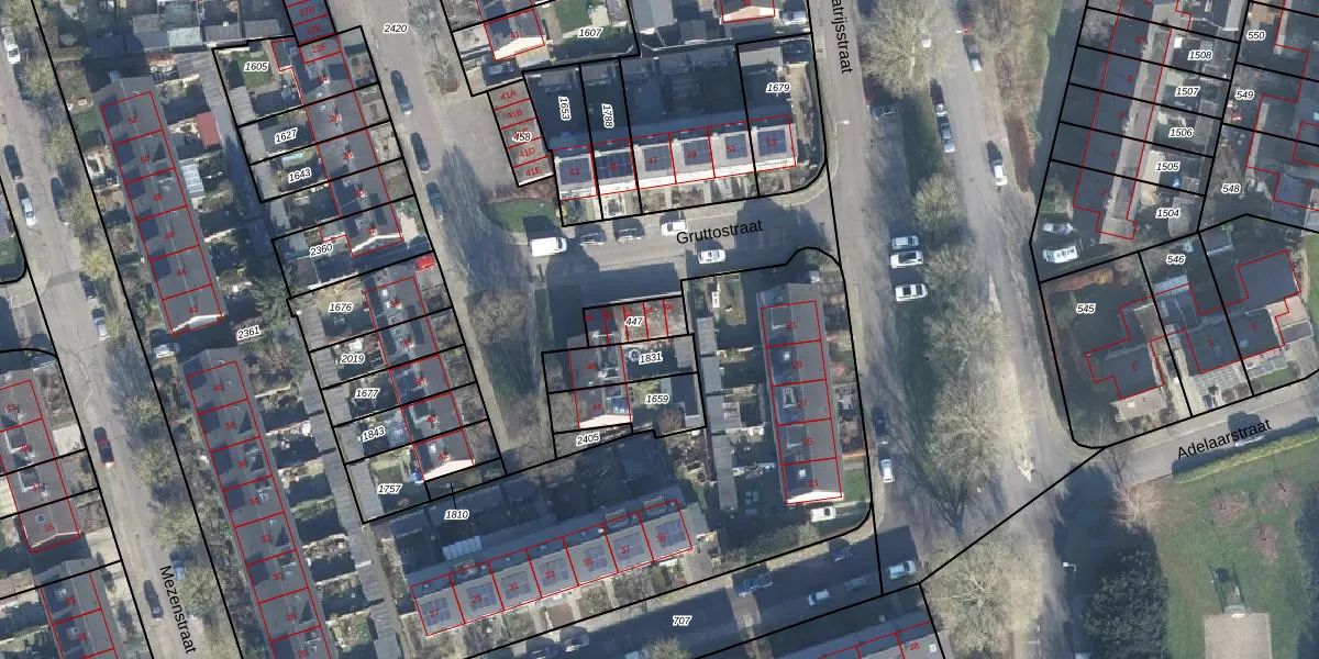 Het perceel waarop Gruttostraat 54 staat heeft een oppervlakte van 91 m². Dit is een klein perceel. De perceeloppervlakte wordt geregistreerd door het Kadaster. Gedetailleerde informatie over de maten van dit perceel kunt u vinden in het rapport Kadastrale kaart met maatvoering van Gruttostraat 54.