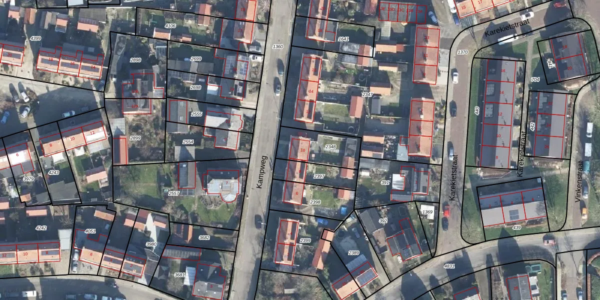 Gebruik de zoekbalk of klik op een perceel voor informatie over de adressen binnen dit perceel.