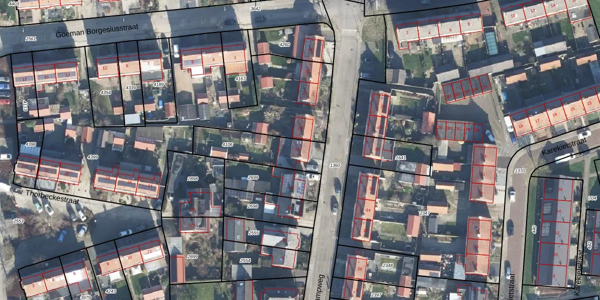 Gebruik de zoekbalk of klik op een perceel voor informatie over de adressen binnen dit perceel.