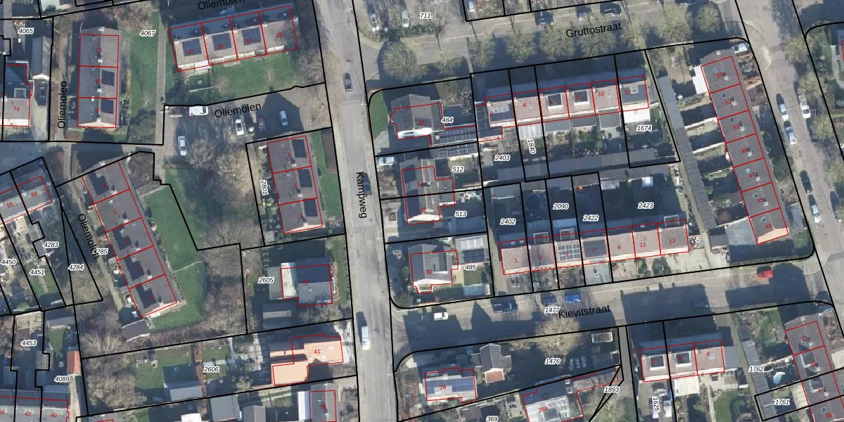 Gebruik de zoekbalk of klik op een perceel voor informatie over de adressen binnen dit perceel.