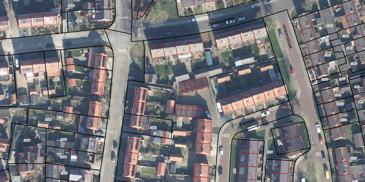 Het perceel waarop Karekietstraat 13-F staat heeft een oppervlakte van 5608 m². Dit is een zeer groot perceel. De perceeloppervlakte wordt geregistreerd door het Kadaster. Gedetailleerde informatie over de maten van dit perceel kunt u vinden in het rapport Kadastrale kaart met maatvoering van Karekietstraat 13-F.
