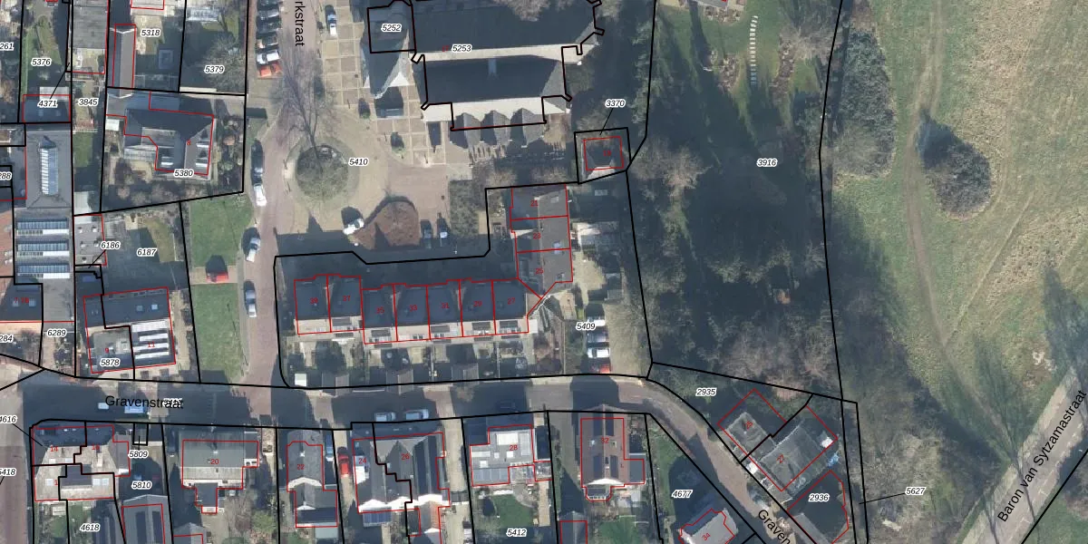 Het perceel waarop Kerkstraat 25 staat heeft een oppervlakte van 1875 m². Dit is een zeer groot perceel. De perceeloppervlakte wordt geregistreerd door het Kadaster. Gedetailleerde informatie over de maten van dit perceel kunt u vinden in het rapport Kadastrale kaart met maatvoering van Kerkstraat 25.
