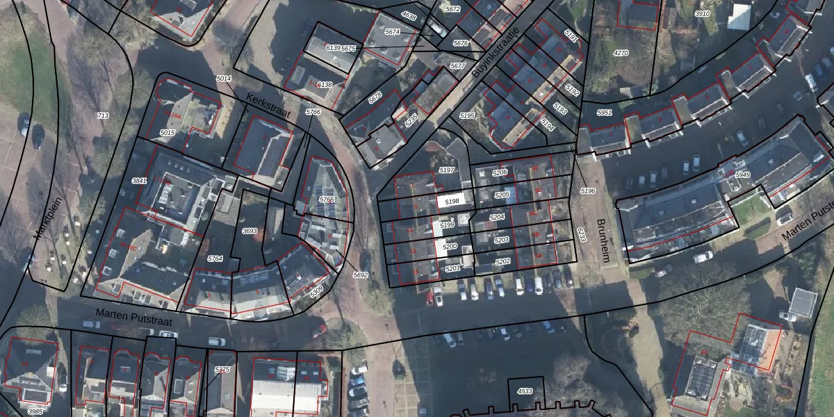 Gebruik de zoekbalk of klik op een perceel voor informatie over de adressen binnen dit perceel.