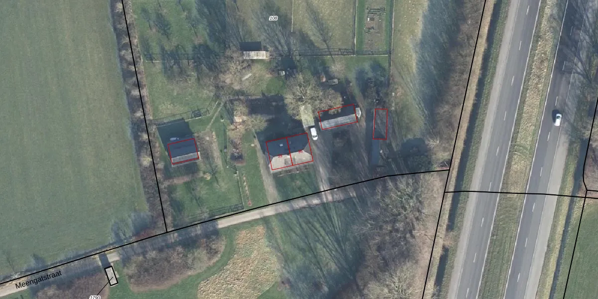 Het perceel waarop Meengatstraat 35 staat heeft een oppervlakte van 1,3 ha. Dit is een zeer groot perceel. De perceeloppervlakte wordt geregistreerd door het Kadaster. Gedetailleerde informatie over de maten van dit perceel kunt u vinden in het rapport Kadastrale kaart met maatvoering van Meengatstraat 35.
