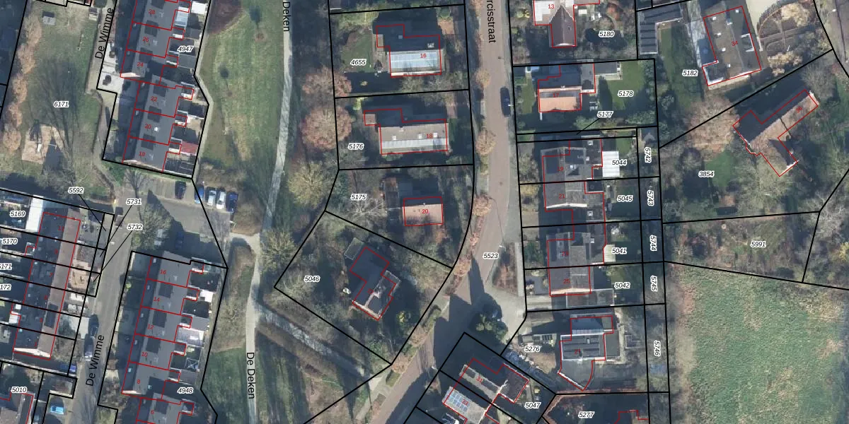 Narcisstraat 20 is gelegen op kadastraal perceel BMN01G5175. Deze kadastrale aanduiding is uniek en wordt gebruikt door het Kadaster om eigendomsrechten en andere zakelijke rechten vast te leggen. Het perceel maakt onderdeel uit van de kadastrale gemeente Brummen.