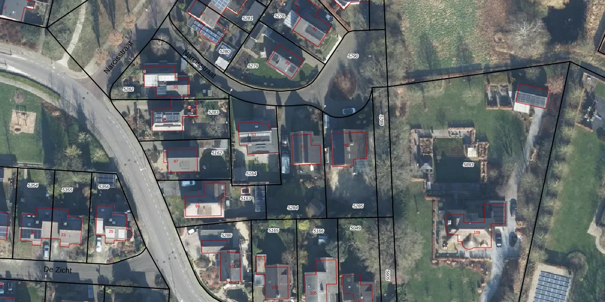 Het perceel waarop Narcisstraat 51 staat heeft een oppervlakte van 613 m². Dit is een groot perceel. De perceeloppervlakte wordt geregistreerd door het Kadaster. Gedetailleerde informatie over de maten van dit perceel kunt u vinden in het rapport Kadastrale kaart met maatvoering van Narcisstraat 51.