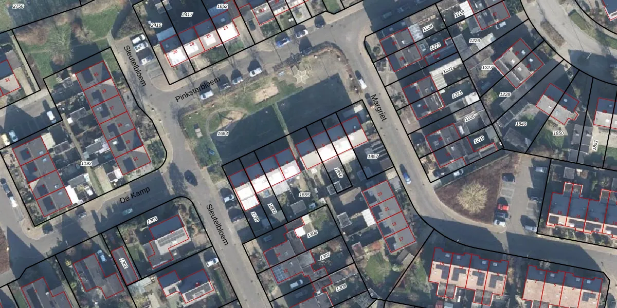 Het perceel waarop Pinksterbloem 7 staat heeft een oppervlakte van 1424 m². Dit is een zeer groot perceel. De perceeloppervlakte wordt geregistreerd door het Kadaster. Gedetailleerde informatie over de maten van dit perceel kunt u vinden in het rapport Kadastrale kaart met maatvoering van Pinksterbloem 7.