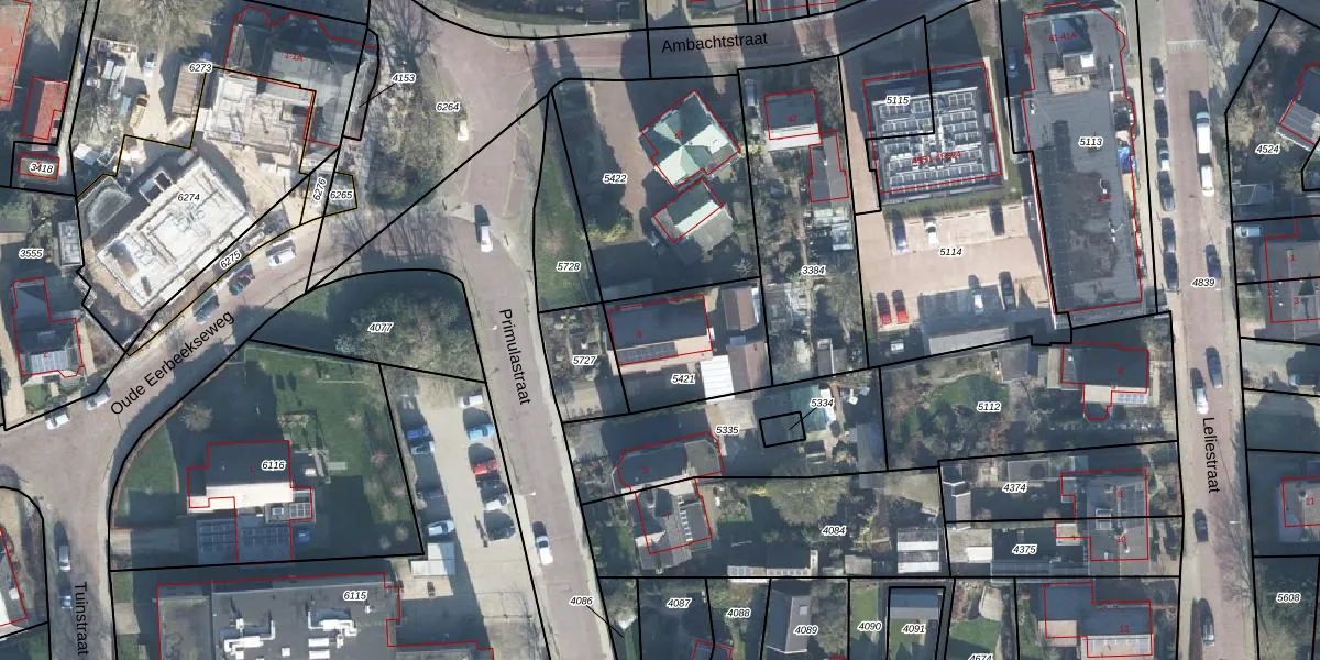 Gebruik de zoekbalk of klik op een perceel voor informatie over de adressen binnen dit perceel.