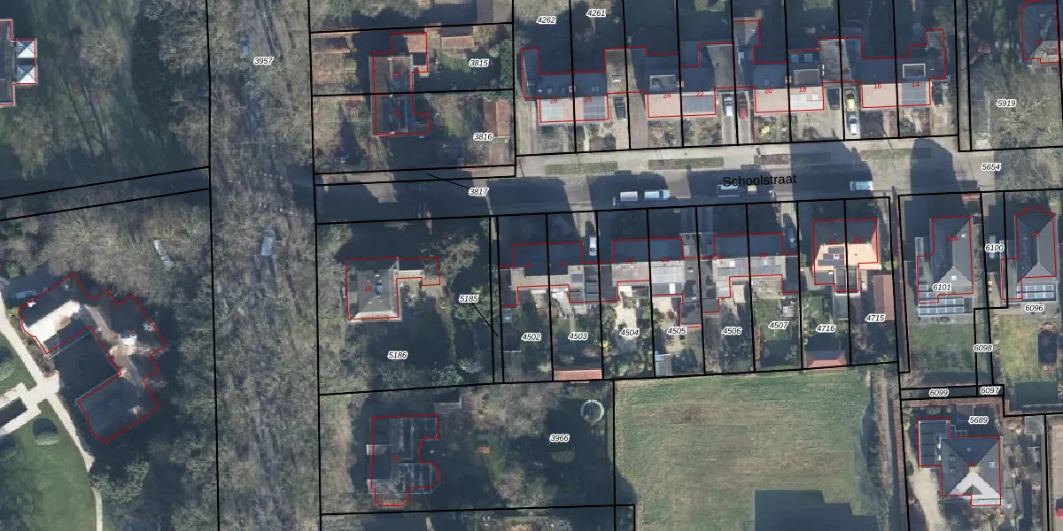 Het perceel waarop Schoolstraat 29 staat heeft een oppervlakte van 296 m². Dit is een middelgroot perceel. De perceeloppervlakte wordt geregistreerd door het Kadaster. Gedetailleerde informatie over de maten van dit perceel kunt u vinden in het rapport Kadastrale kaart met maatvoering van Schoolstraat 29.