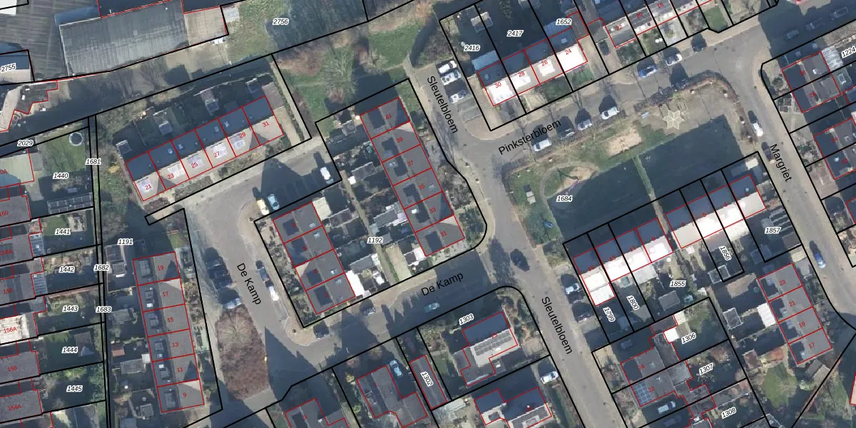 Het perceel waarop Sleutelbloem 33 staat heeft een oppervlakte van 1672 m². Dit is een zeer groot perceel. De perceeloppervlakte wordt geregistreerd door het Kadaster. Gedetailleerde informatie over de maten van dit perceel kunt u vinden in het rapport Kadastrale kaart met maatvoering van Sleutelbloem 33.