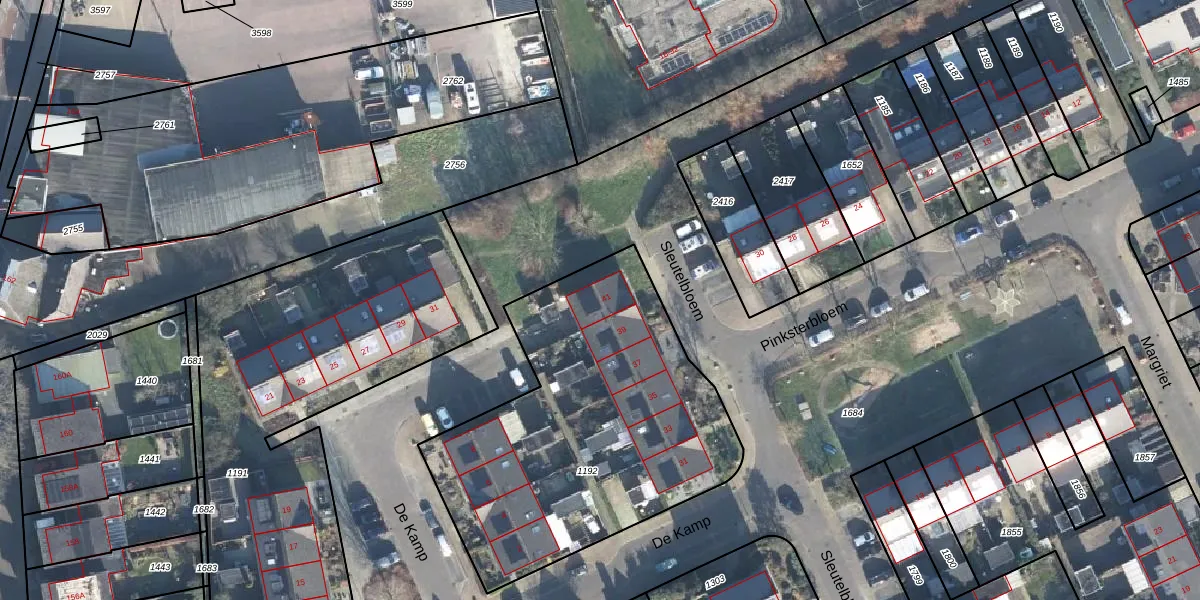 Het perceel waarop Sleutelbloem 41 staat heeft een oppervlakte van 1672 m². Dit is een zeer groot perceel. De perceeloppervlakte wordt geregistreerd door het Kadaster. Gedetailleerde informatie over de maten van dit perceel kunt u vinden in het rapport Kadastrale kaart met maatvoering van Sleutelbloem 41.