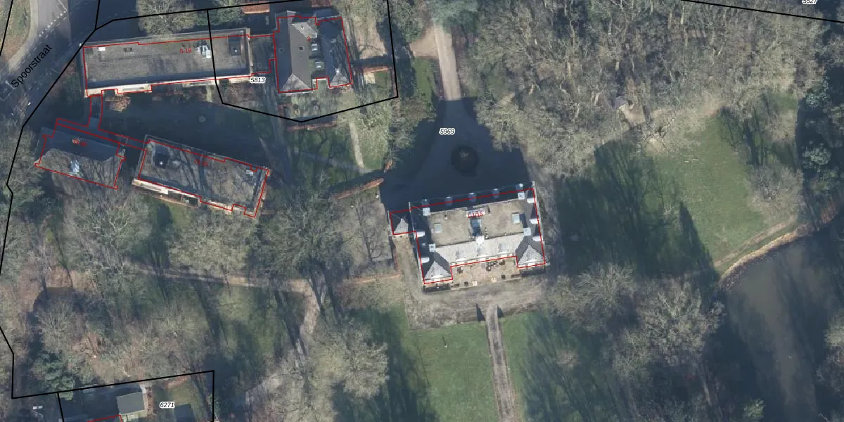 Het perceel waarop Spoorstraat 1-4 staat heeft een oppervlakte van 3,5 ha. Dit is een zeer groot perceel. De perceeloppervlakte wordt geregistreerd door het Kadaster. Gedetailleerde informatie over de maten van dit perceel kunt u vinden in het rapport Kadastrale kaart met maatvoering van Spoorstraat 1-4.
