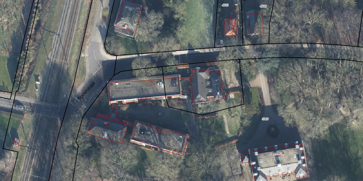 Het perceel waarop Spoorstraat 5 staat heeft een oppervlakte van 1110 m². Dit is een zeer groot perceel. De perceeloppervlakte wordt geregistreerd door het Kadaster. Gedetailleerde informatie over de maten van dit perceel kunt u vinden in het rapport Kadastrale kaart met maatvoering van Spoorstraat 5.
