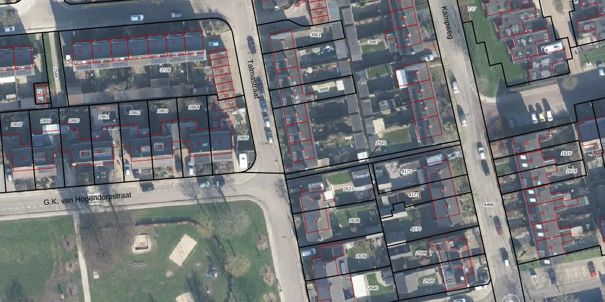 Het perceel waarop Talmastraat 10 staat heeft een oppervlakte van 5568 m². Dit is een zeer groot perceel. De perceeloppervlakte wordt geregistreerd door het Kadaster. Gedetailleerde informatie over de maten van dit perceel kunt u vinden in het rapport Kadastrale kaart met maatvoering van Talmastraat 10.