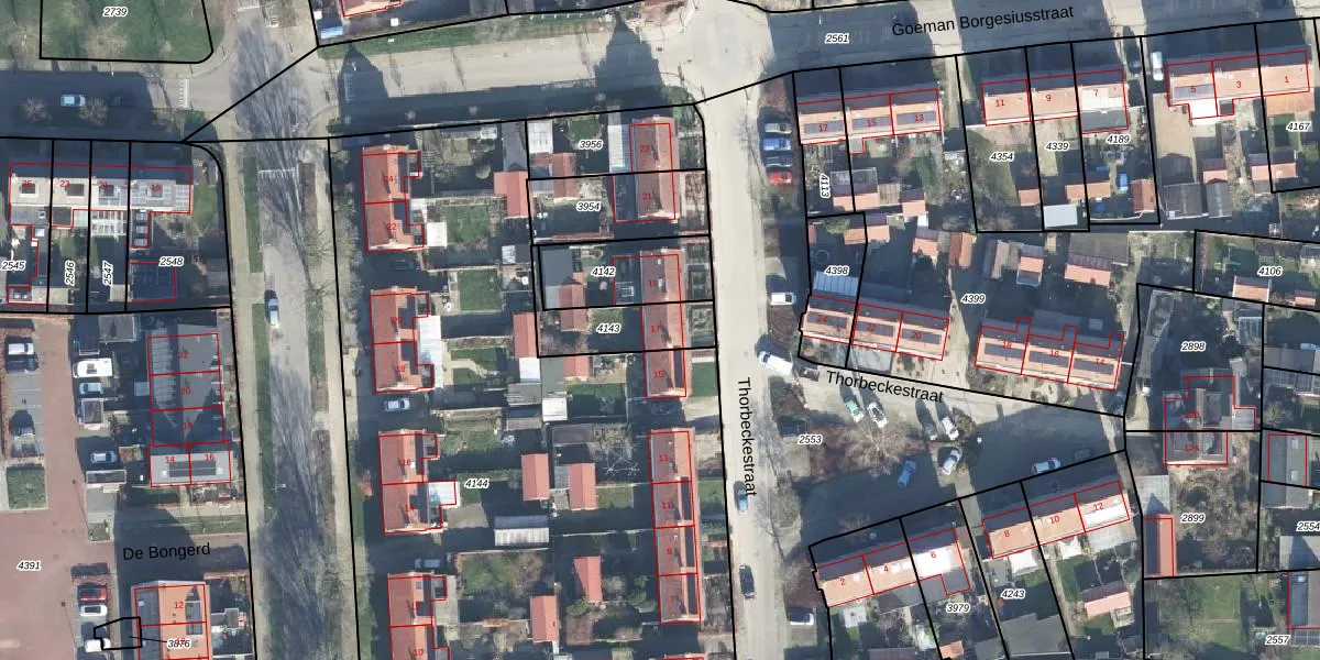 Het perceel waarop Thorbeckestraat 17 staat heeft een oppervlakte van 205 m². Dit is een middelgroot perceel. De perceeloppervlakte wordt geregistreerd door het Kadaster. Gedetailleerde informatie over de maten van dit perceel kunt u vinden in het rapport Kadastrale kaart met maatvoering van Thorbeckestraat 17.