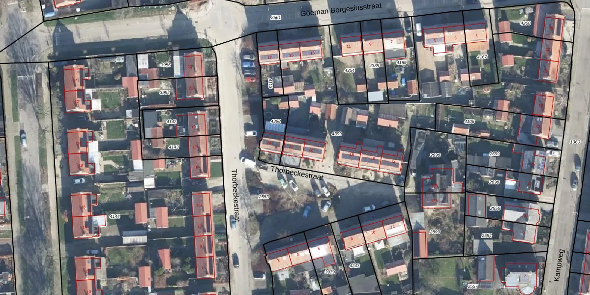 Het perceel waarop Thorbeckestraat 22 staat heeft een oppervlakte van 2863 m². Dit is een zeer groot perceel. De perceeloppervlakte wordt geregistreerd door het Kadaster. Gedetailleerde informatie over de maten van dit perceel kunt u vinden in het rapport Kadastrale kaart met maatvoering van Thorbeckestraat 22.