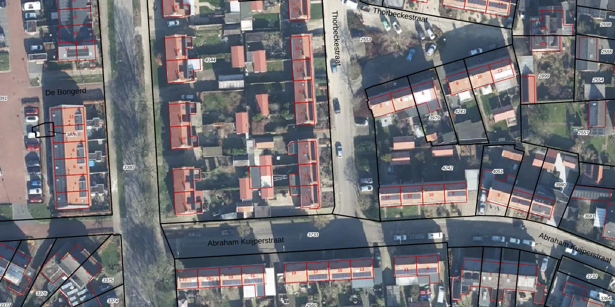 Het perceel waarop Thorbeckestraat 5 staat heeft een oppervlakte van 5095 m². Dit is een zeer groot perceel. De perceeloppervlakte wordt geregistreerd door het Kadaster. Gedetailleerde informatie over de maten van dit perceel kunt u vinden in het rapport Kadastrale kaart met maatvoering van Thorbeckestraat 5.