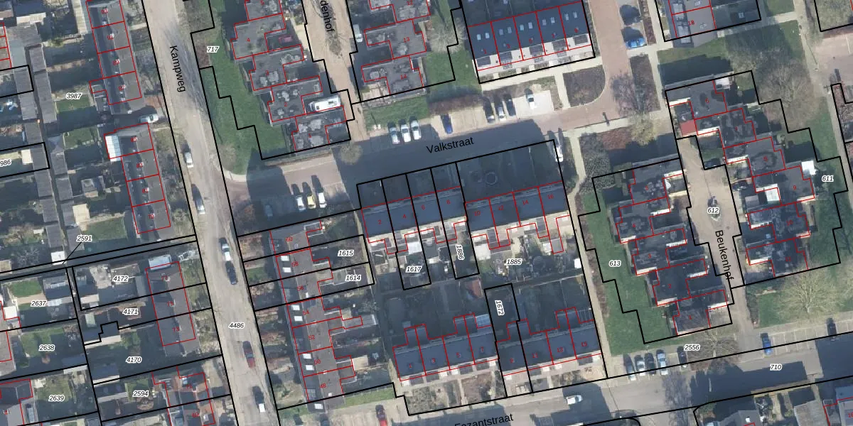 Het perceel waarop Valkstraat 6 staat heeft een oppervlakte van 3117 m². Dit is een zeer groot perceel. De perceeloppervlakte wordt geregistreerd door het Kadaster. Gedetailleerde informatie over de maten van dit perceel kunt u vinden in het rapport Kadastrale kaart met maatvoering van Valkstraat 6.