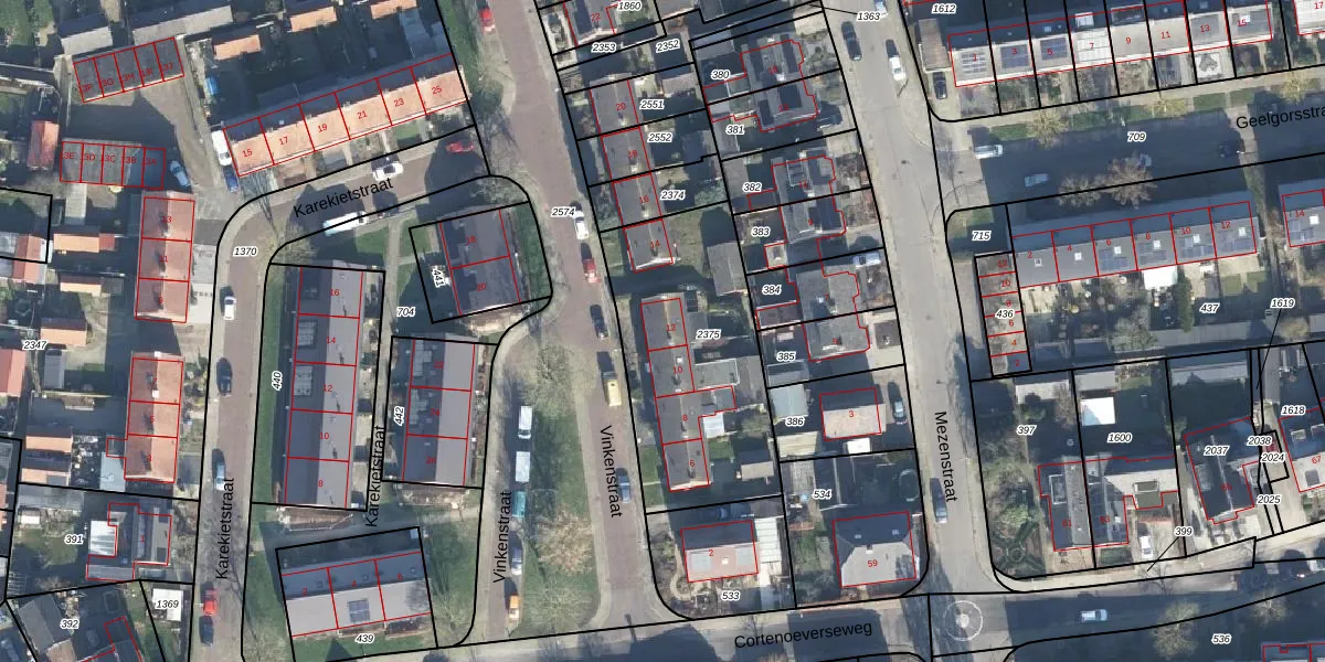 Het perceel waarop Vinkenstraat 12 staat heeft een oppervlakte van 926 m². Dit is een groot perceel. De perceeloppervlakte wordt geregistreerd door het Kadaster. Gedetailleerde informatie over de maten van dit perceel kunt u vinden in het rapport Kadastrale kaart met maatvoering van Vinkenstraat 12.