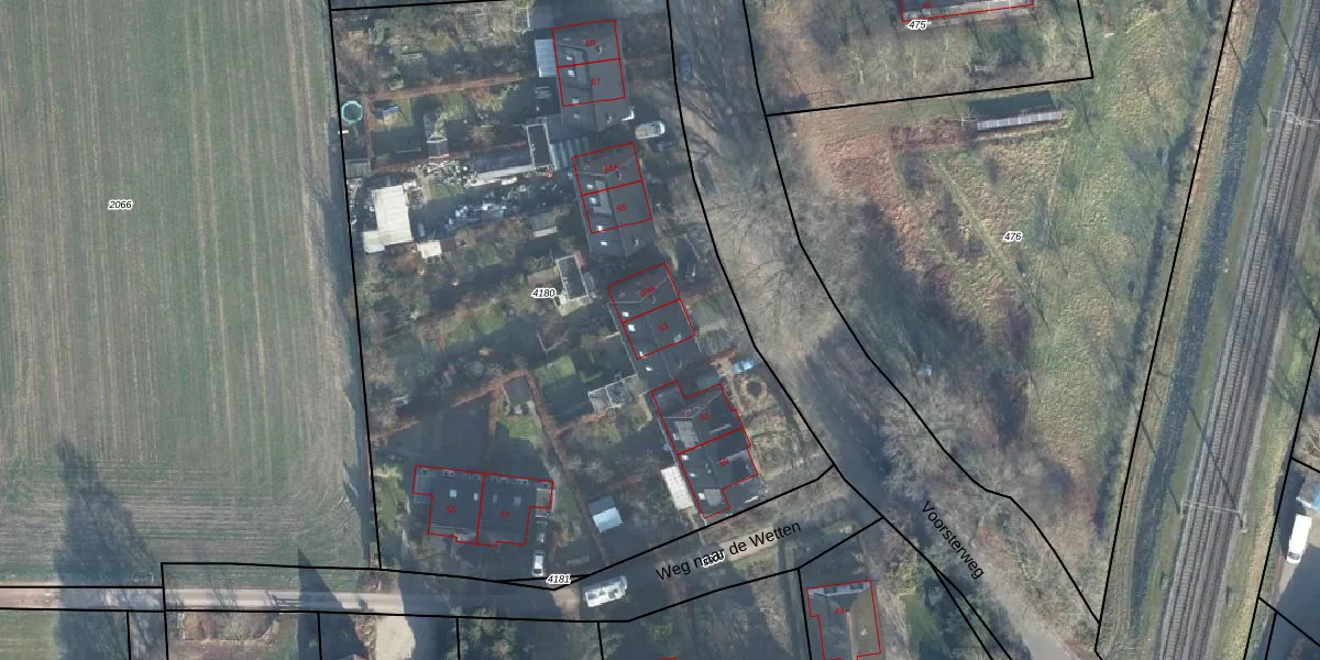 Het perceel waarop Voorsterweg 63 staat heeft een oppervlakte van 5177 m². Dit is een zeer groot perceel. De perceeloppervlakte wordt geregistreerd door het Kadaster. Gedetailleerde informatie over de maten van dit perceel kunt u vinden in het rapport Kadastrale kaart met maatvoering van Voorsterweg 63.