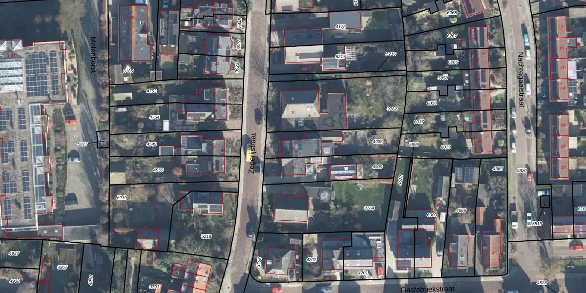 Het perceel waarop Zegerijstraat 28 staat heeft een oppervlakte van 390 m². Dit is een groot perceel. De perceeloppervlakte wordt geregistreerd door het Kadaster. Gedetailleerde informatie over de maten van dit perceel kunt u vinden in het rapport Kadastrale kaart met maatvoering van Zegerijstraat 28.