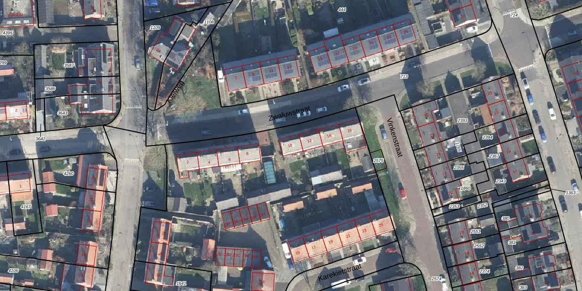 Het perceel waarop Zwaluwstraat 10 staat heeft een oppervlakte van 5608 m². Dit is een zeer groot perceel. De perceeloppervlakte wordt geregistreerd door het Kadaster. Gedetailleerde informatie over de maten van dit perceel kunt u vinden in het rapport Kadastrale kaart met maatvoering van Zwaluwstraat 10.