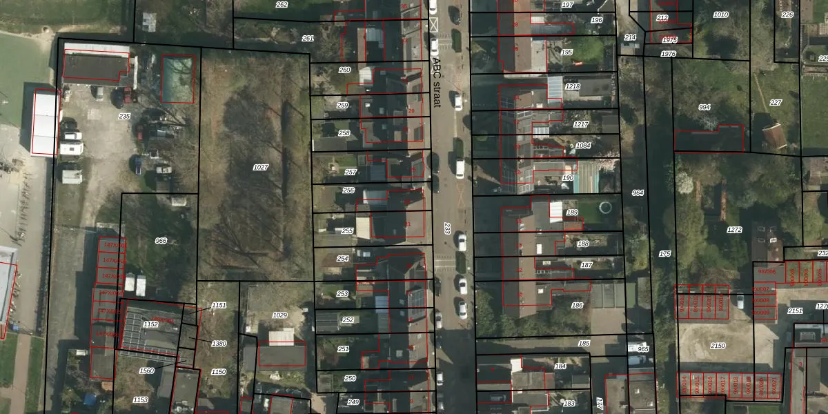 Gebruik de zoekbalk of klik op een perceel voor informatie over de adressen binnen dit perceel.